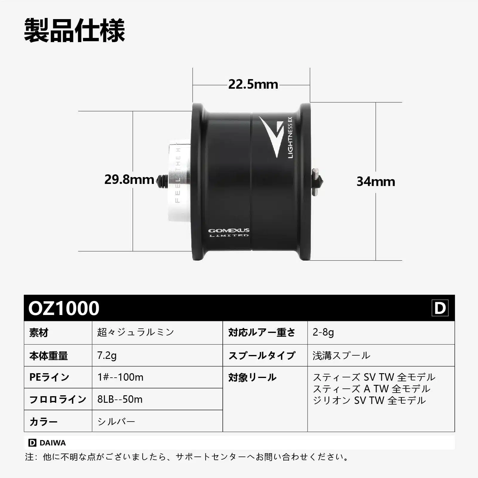 OZ1000 超々ジュラルミン製スプール スティーズSV TW 8LB 50m 1PE 100m